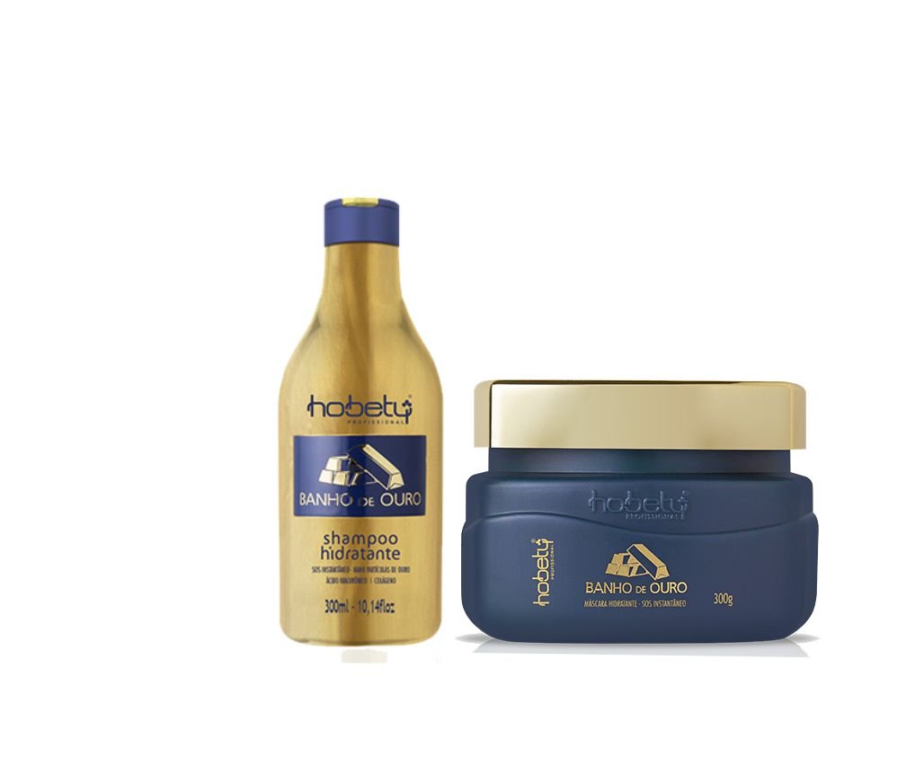 Kit Hobety Banho De Ouro Shampoo 300 Ml+ Mascara 300Gr